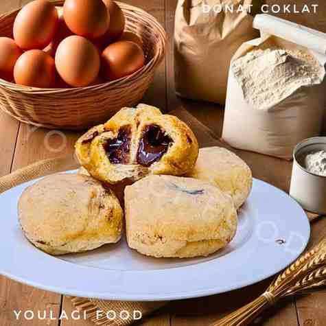 Donat susu dengan isi coklat lumer. Tanpa pengawet simpan beku di freezer tahan selama 6 bulan.